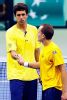 Brazil's doubles team of Marcelo Melo and Bruno Soares upset the top-ranked Mike and Bob Bryan 7-6 (6), 6-7 (7), 6-4, 3-6, 6-3 and kept the United States from clinching the first-round Davis Cup match.